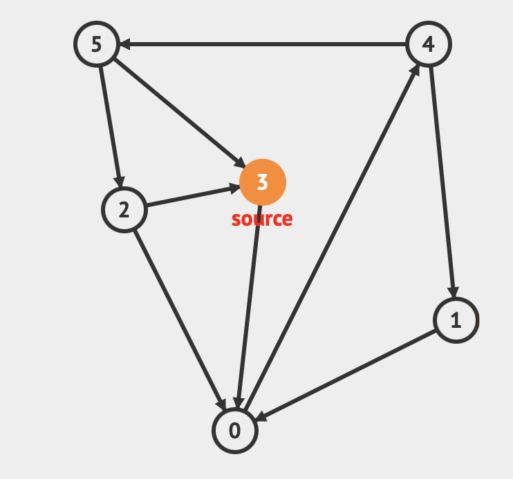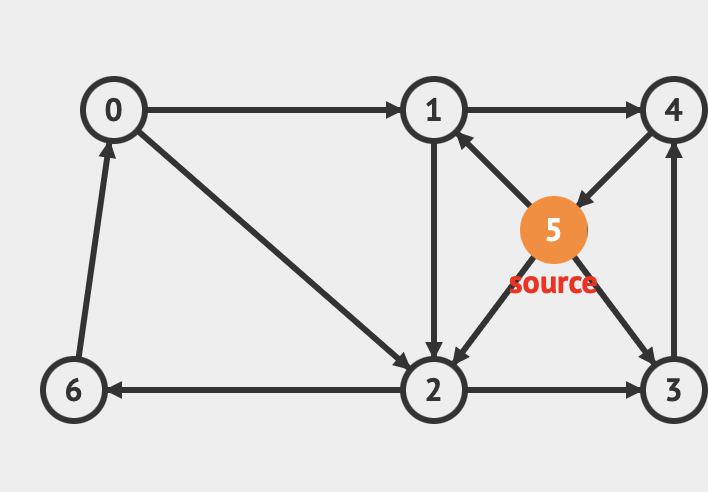 What would the output be if we were to print each node in a Depth First Search starting from the node marked with value source? Assume we traverse starting from the leftmost neighbor (e.g. in node 5, we would push to the stack node 1, node 2, node 3 in that order)