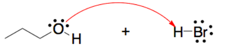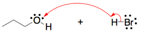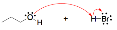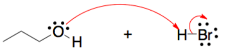 Escoja el mecanismo correcto, que muestra el movimiento de flechas curvas para la reacción ácido-base entre n-propanol y el ácido bromhídrico..