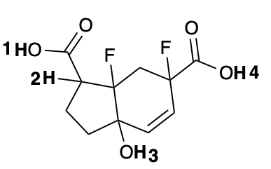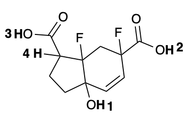 Entre los protones enumerados 1 al 4, escoja el protón que sea el ácido más fuerte de la molécula: