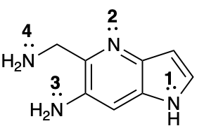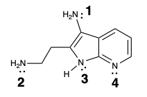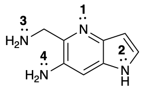 Entre los átomos enumerados 1 al 4, escoja la base más fuerte de la molécula: