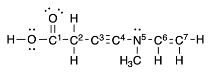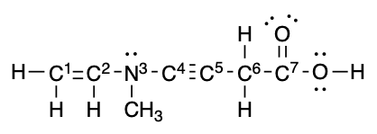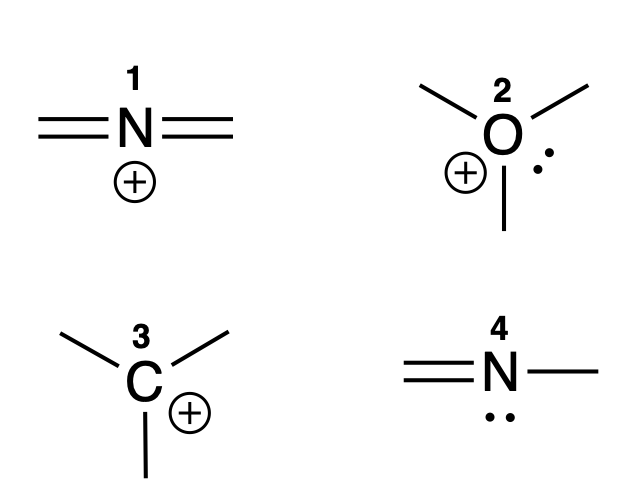 Escoja el cálculo y resultado correcto para la carga formal del nitrógeno en la estructura dada en este ejercicio.