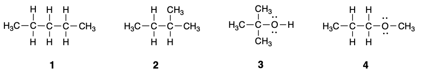 Analice las fuerzas intermoleculares para parear el número que representa cada una de las siguientes moléculas con su respectivo punto de ebullición.