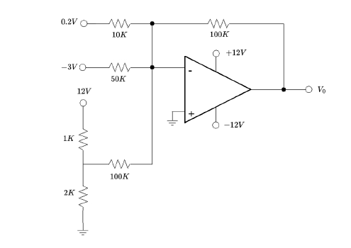 Calcular el voltaje de salida V0 del Amplificador Sumador Inversor.
