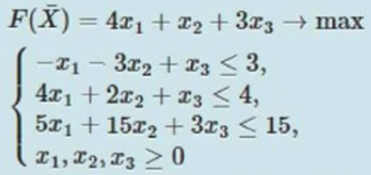 В процесі рішення задачі лінійного програмування симплекс-методом отримано оптимальне рішення задачі. Необхідно вказати характер задачі та значення цільвої функції.