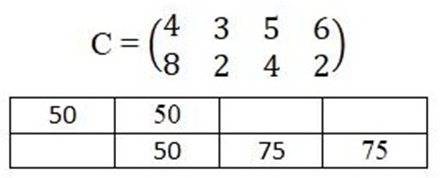 Дано матрицю вартості перевезення вантажу С і побудовано опорний план перевезень, заданий у таблиці. Розрахуйте сумарну вартість побудованого плану