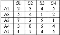 Знайдіть оптимальну альтернативу за критерієм Вальда в задачі прийняття рішень, яка задана мартицею :