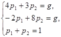 Для матричної гри система рівнянь для знаходження оптимальної стратегії X*(p1;p2} гравця а и ціни гри g має вигляд…}