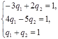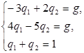 Для матричної гри система рівнянь для знаходження оптимальної стратегії Y*(q1;q2) гравця в і ціни гри g має вигляд…
