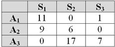 виберіть оцінку стратегії А1, зроблену за критерієм Ходжа-Лемана, якщо параметр вірогідності інформації про ймовірності станів навколишнього середовища u = 0,7