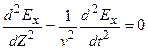 Як записується хвильове рівняння для напруженості електричного поля для плоскої електромагнітної хвилі?