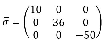Dans un alliage d’aluminium (module d’Young E = 74 000 MPa ; coefficient de Poisson = 0.3), l’état de contraintes, dans une base principale (xyz) est donné ci-dessous :