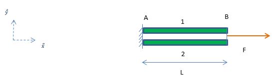 Soit la structure suivante constituée de 2 poutres identiques (même matériau, même section) montées en parallèle, encastrée en A et soumises à un effort F en B