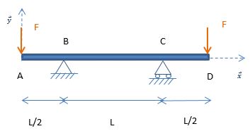 Soit une poutre de longueur L= 1 m sur deux appuis soumise à une force F=500 N