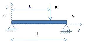 Soit une poutre de longueur L= 1 m sur deux appuis soumise à une force F=500 daN appliquée à une distance de 0,4 m