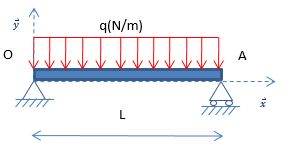 Soit une poutre de longueur L=4 m sur deux appuis soumis à une charge répartie q=2040 N/m