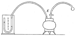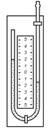 На рисунку схематично показаний рідининйй манометр у роботі 1-6. Чи вірно, що тиск в об'ємі газу, який з'єднаний з коліном манометра 1 більше, ніж в газі, що з'єднаний з другим коліном манометра?