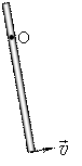 На рисунку показний фізичний маятник, швидкість нижнього кінця якого в дану мить напрямлена праворуч. Як напрямлений вектор кутової швидкості маятника при його обертанні навколо осі, що проходить через точку О перпендикулярно до площини рисунка?