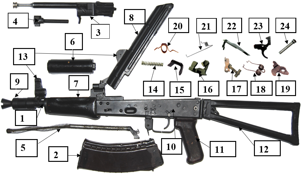 Яке призначення має частина зброї, що позначена на малюнку цифрою 12?
