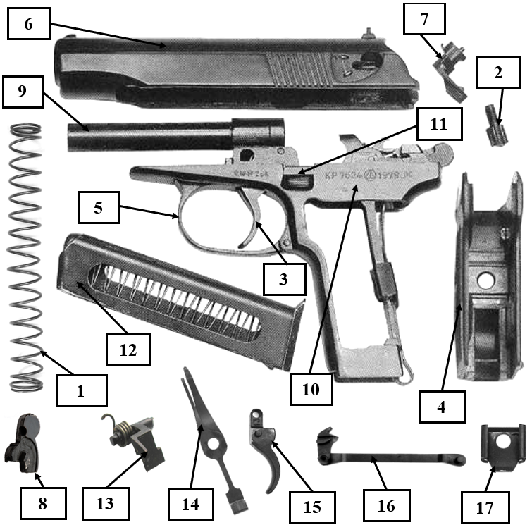 Яке призначення має частина зброї, що позначена на малюнку цифрою 8?