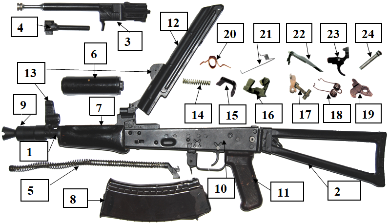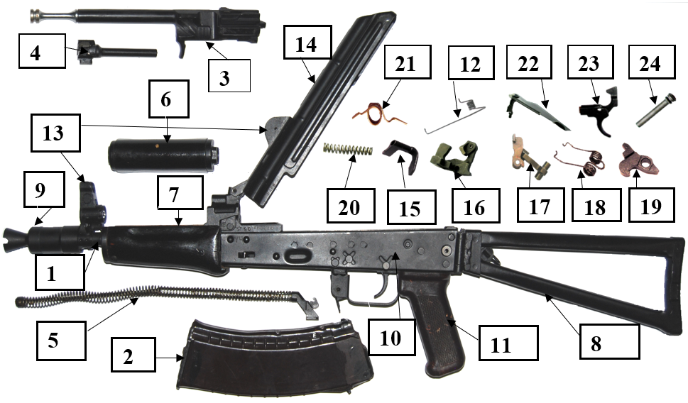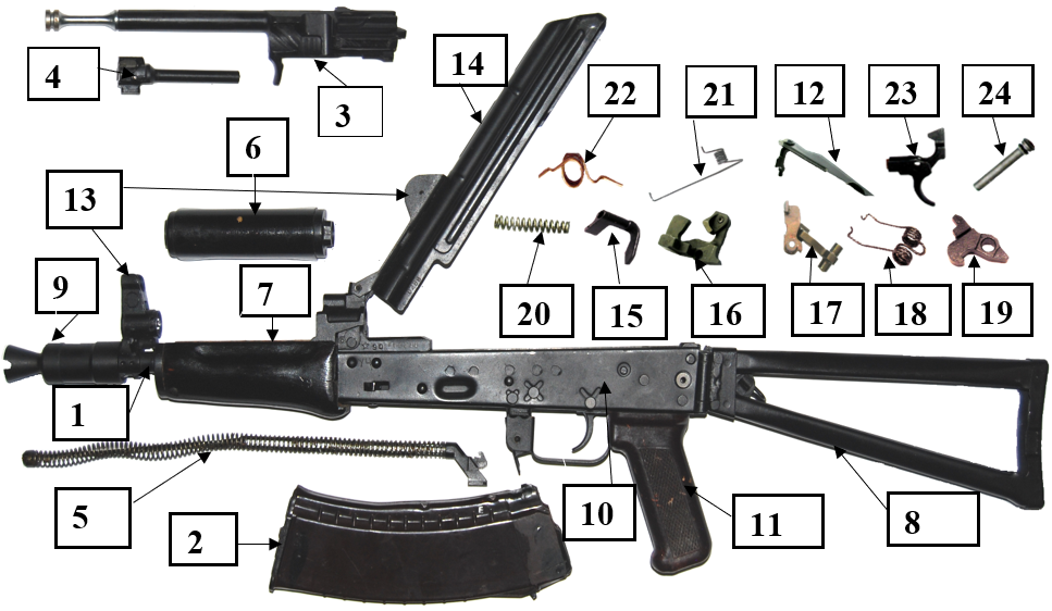 Яке призначення має частина зброї, що позначена на малюнку цифрою 12?