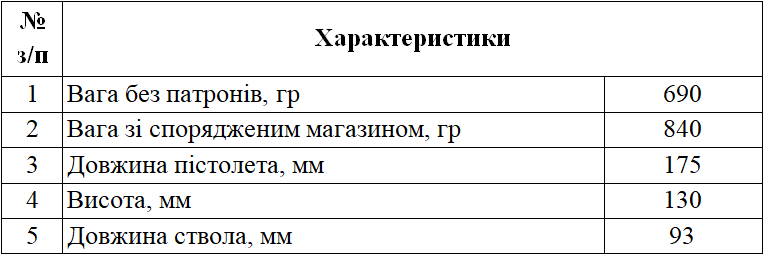 Яка з тактико-технічних характеристик зброї притаманна пістолету Форт-17?