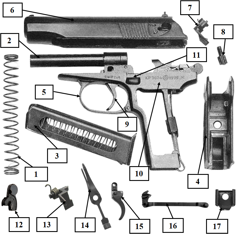 Яке призначення має частина пістолета Макарова, зображена на малюнку?