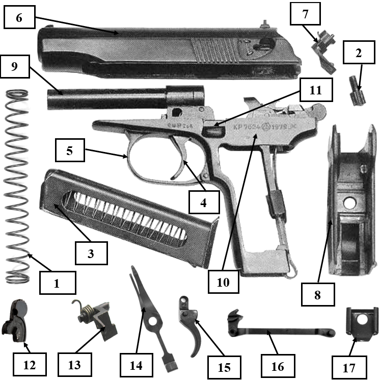 Яке призначення має частина зброї, що позначена на малюнку цифрою 8?
