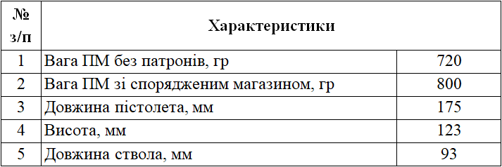 Яка з тактико-технічних характеристик зброї притаманна пістолету Макарова?