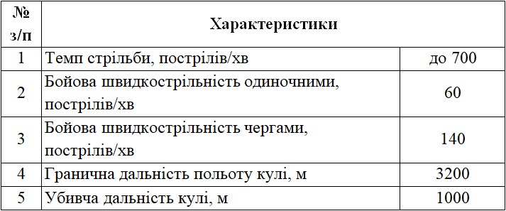 Яка з тактико-технічних характеристик зброї притаманна АКС-74У?