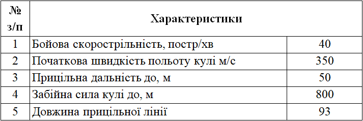 Яка з тактико-технічних характеристик зброї притаманна пістолету Макарова?