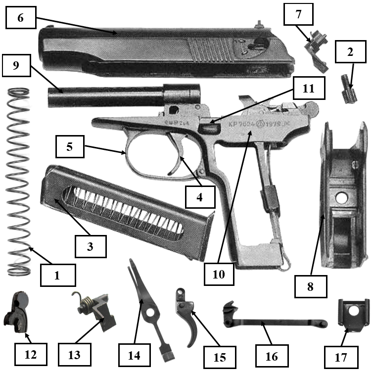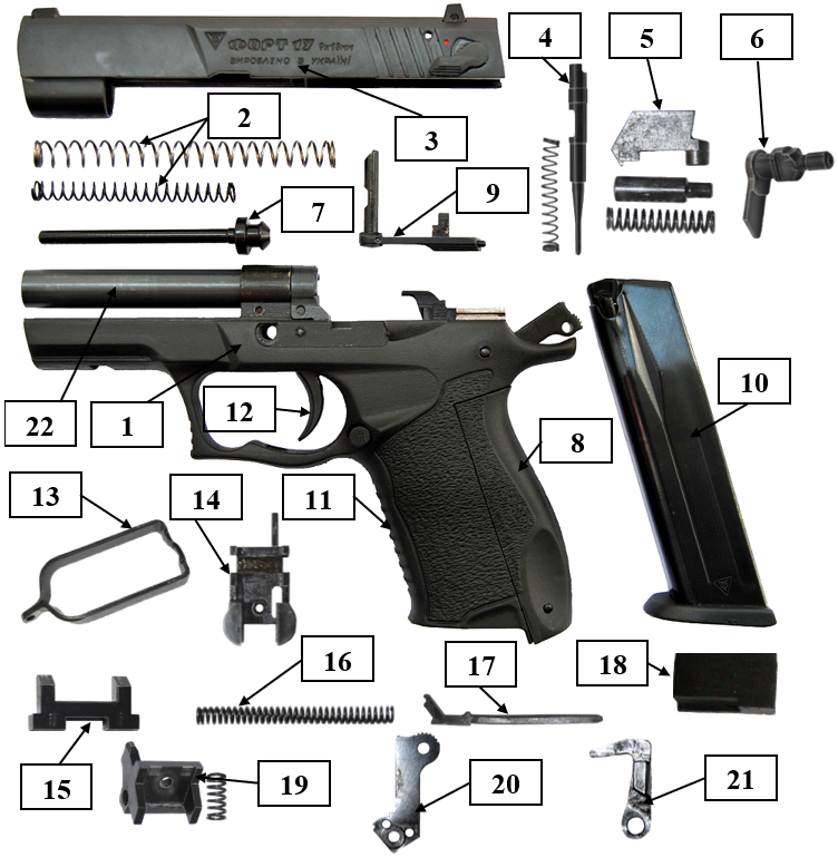 Яка частина зброї позначена на малюнку цифрою 8?