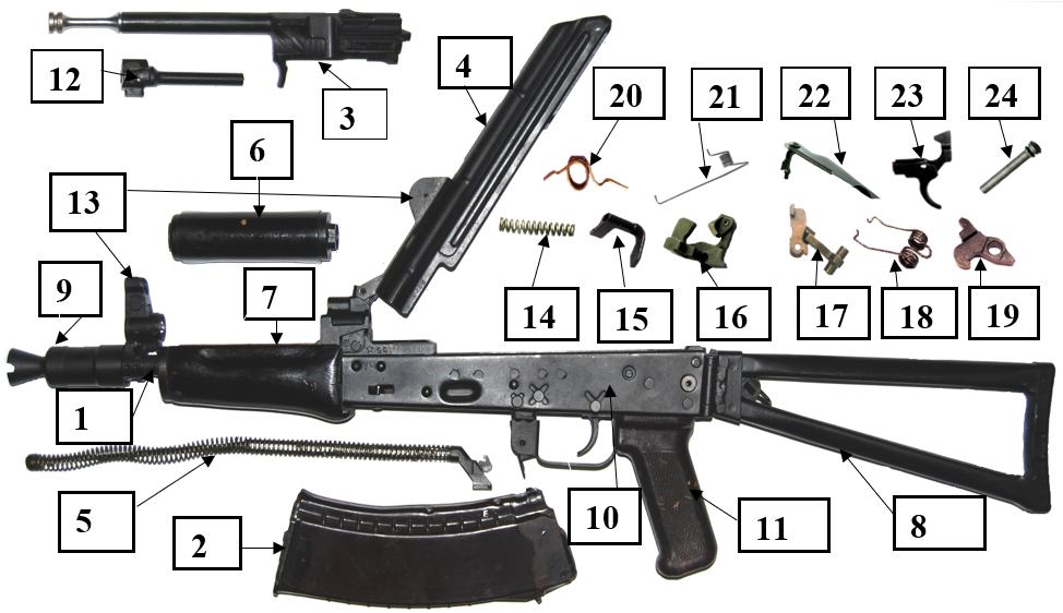 Яке призначення має частина зброї, що позначена на малюнку цифрою 2?