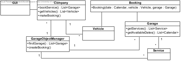 The requirements below partially describe a garage management system that is used for managing day to day activities of garages (of a company). The system keeps track of customers, vehicles, bookings, payments and employees. Draw a UML class diagram describing an object-oriented system using the list of requirements below.