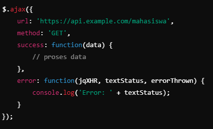 Berikut adalah kode AJAX yang diharapkan mengembalikan data mahasiswa. Apa yang akan terjadi jika URL yang diberikan tidak valid?