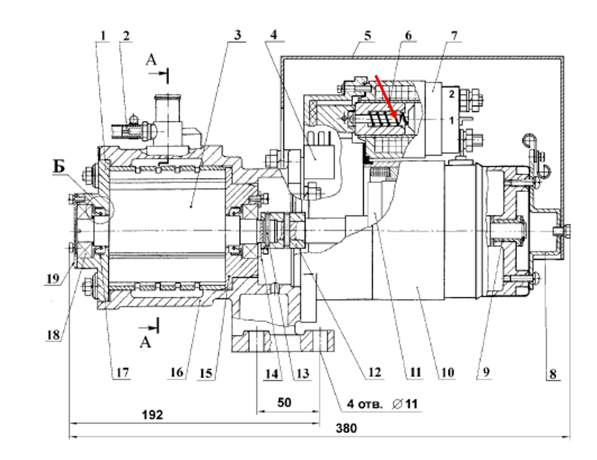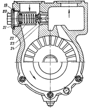 Назовите деталь, указанную стрелкой на чертеже шиберного вакуумного насоса