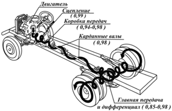 Укажите составные элементы трансмиссии грузового автомобиля