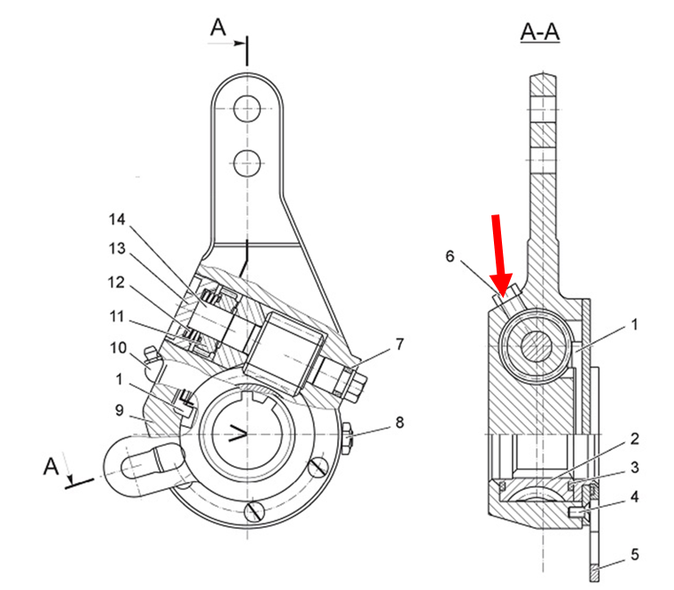 На схеме автоматического регулировочного рычага стрелкой указан