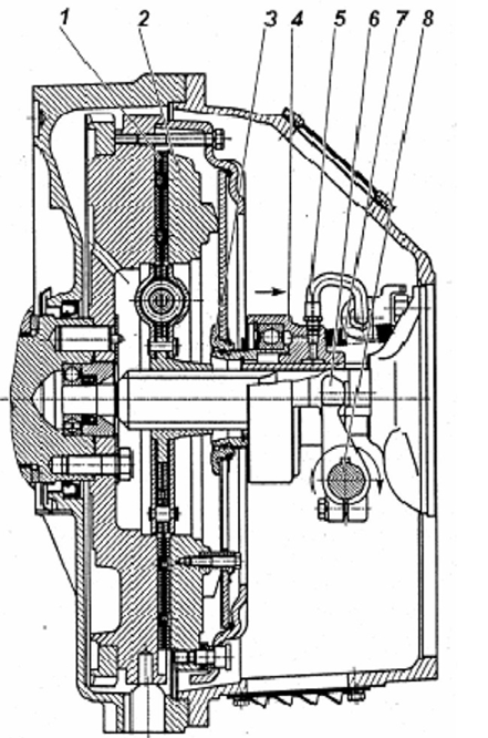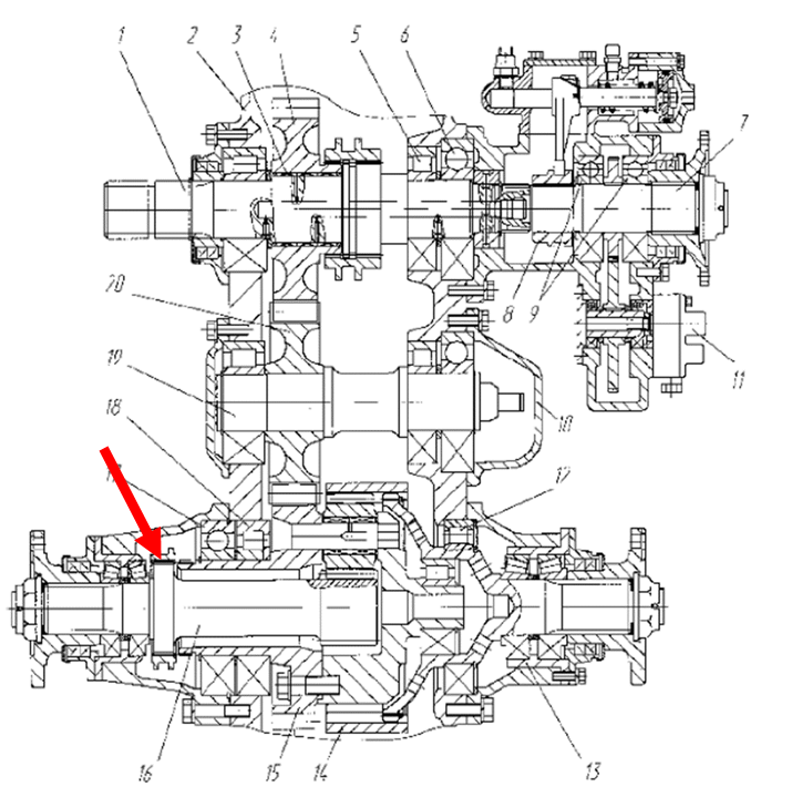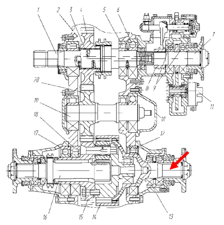 На чертеже раздаточной коробки МАЗ с коробкой отбора мощности для привода пожарного насоса стрелкой указан