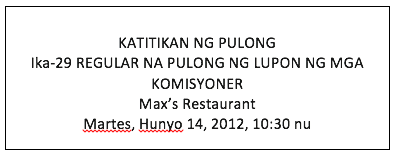 Alamin kung anong bahagi ng katitikan isinusulat ang mga sumusunod: