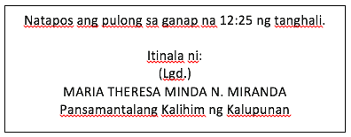 Alamin kung anong bahagi ng katitikan isinusulat ang mga sumusunod: