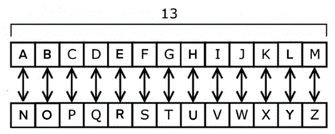 Descifre el siguiente mensaje aplicando cifrado Cesar con un desplazamiento de 13 caracteres como se muestra en la imagen de guía:
