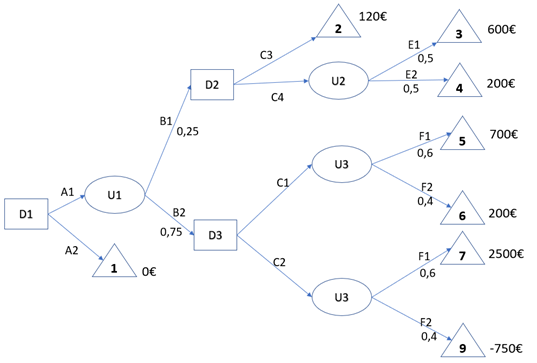 Given the following tree, where all monetary values represent profit for the decision-maker: