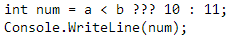 Suppose we have following code which prints "10" as a result of it's execution.Please type operator which should be placed instead of question marks (???):