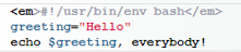 In the script shown below, what is a greeting?