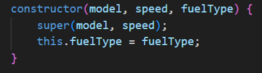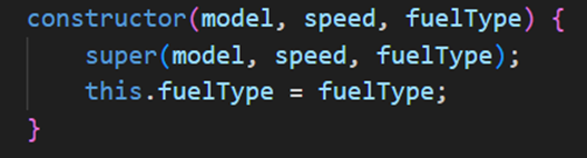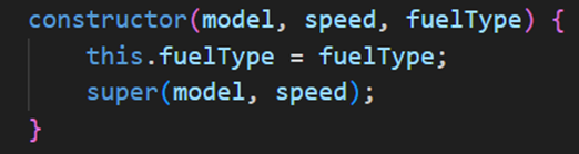 Which of the following implementations of the Car child class constructor is correct? The constructor accepts 3 parameters: model, speed, fuelType.
