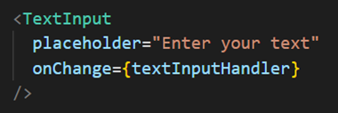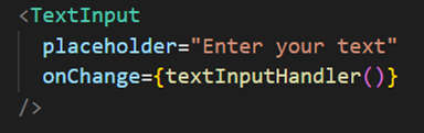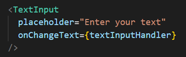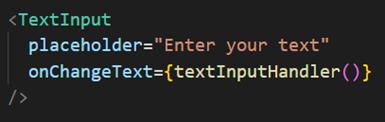 Choose the correct way to implement the TextInput component in React Native, which responds to any text input by calling the textInputHandler() function and passing the text argument to this function.