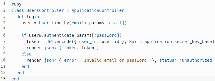 What is the purpose of the following code in the `login` method, and how is JWT used?