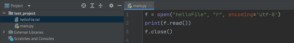 In root folder of project two files are located. There are helloFile.txt with some text and main.py with the next script.