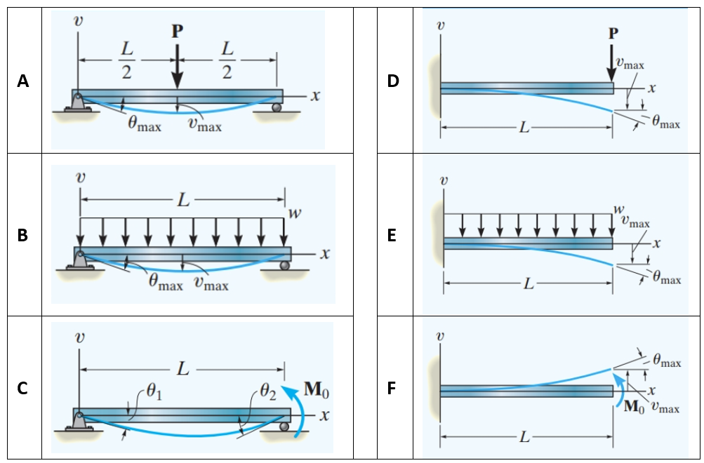 Select the individual beam loading cases from this table that you would use to represent the loading scenario through the method of superposition: