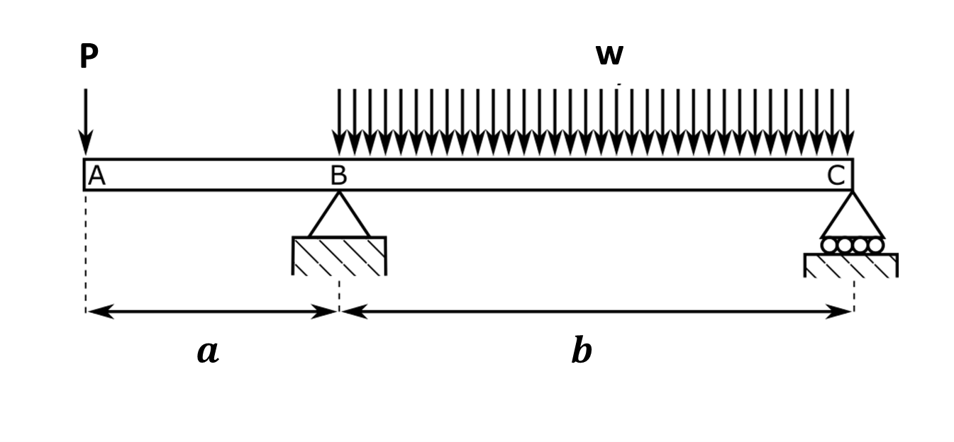 Consider the loading scenario for the bending beam ABCD shown in the figure below: